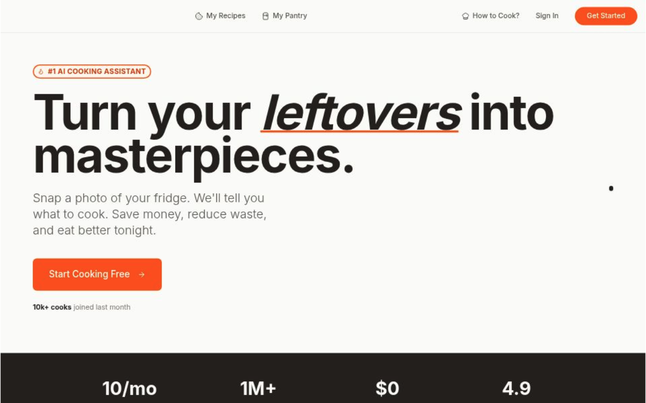 A curated list of available dishes with suggested recipes powered by AI, with custom photo recognition to identify ingredients and provide personalized meal suggestions.